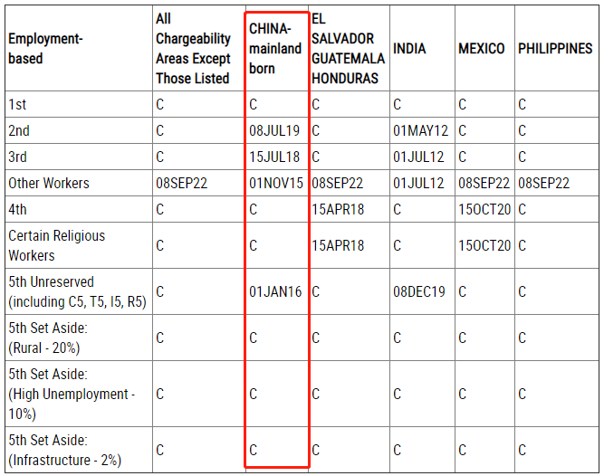 美国国务院公布2022年11月移民排期,几乎无变化。其中,EB-1无排期,EB-2无变化,EB-3技术类无变化,EB-3非技术前进3个月,EB5非签证预留项目无变化。