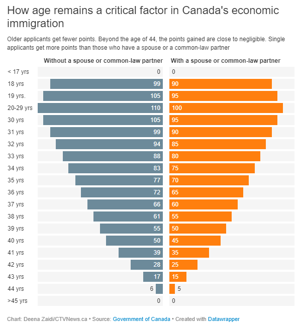 但是对于某些移民项目,例如联邦技术工人项目(FSWP)或加拿大经验类移民项目(CEC),年轻的重要性变得非常明显,尤其是对于达到40岁门槛的申请人。