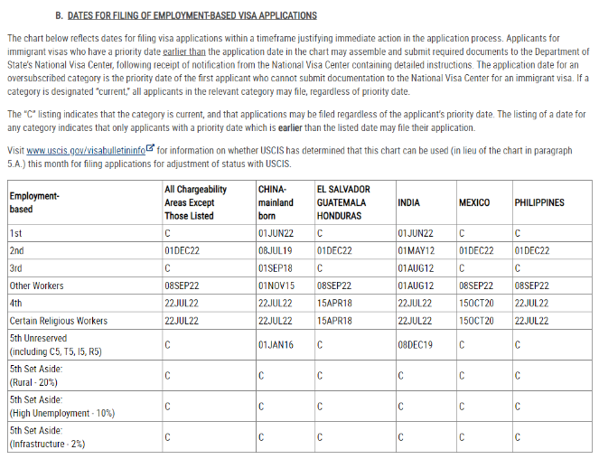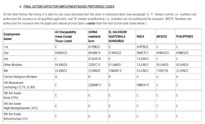 • EB-1出现排期,为2022年6月1日;