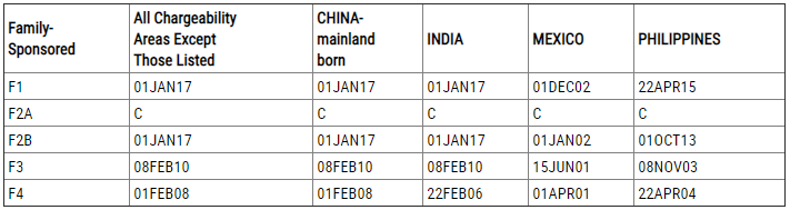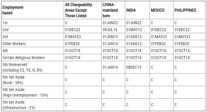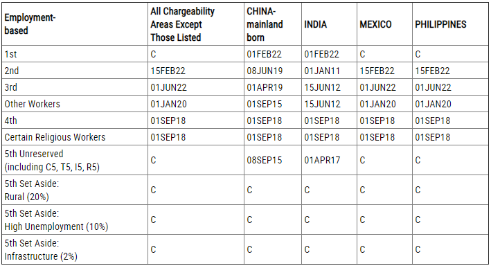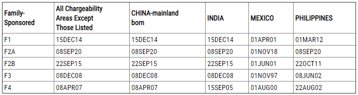 排期表A:最终裁定日(Final Action Dates)