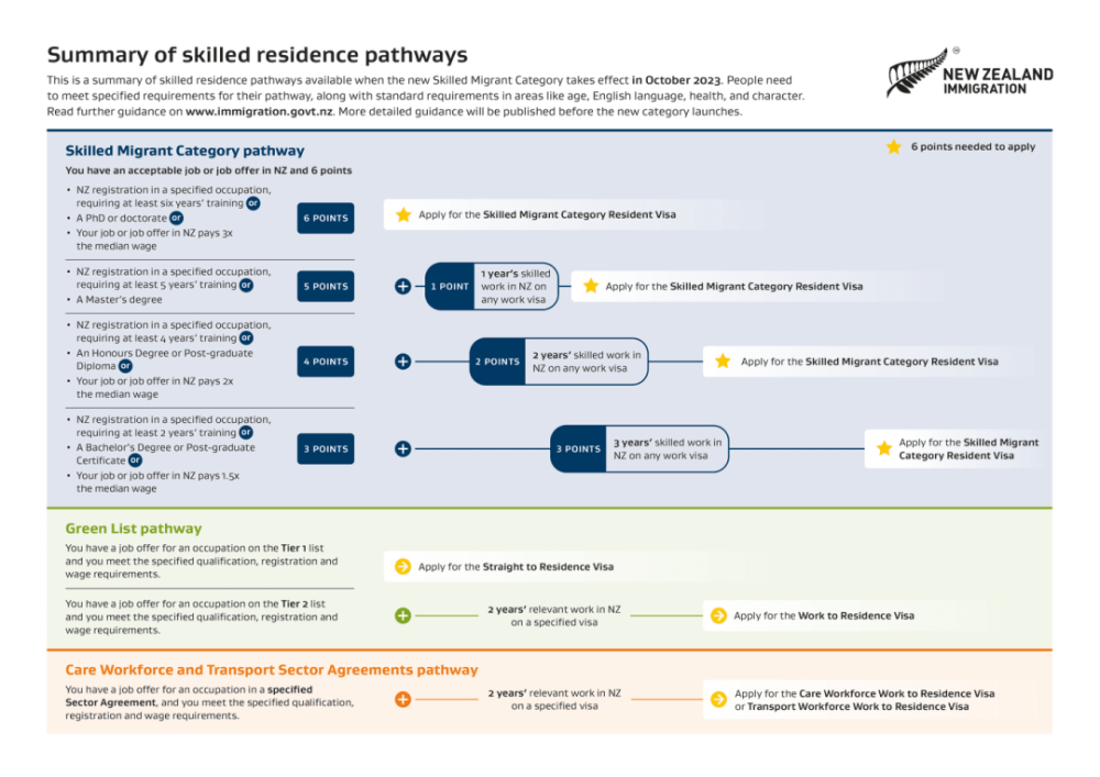 从2023年10月9日起,新西兰技术移民类(Skilled Migrant Category,简称SMC)居民签证将引入一种新的简化评分系统,申请技术移民类居留签证需要满足6分标准。