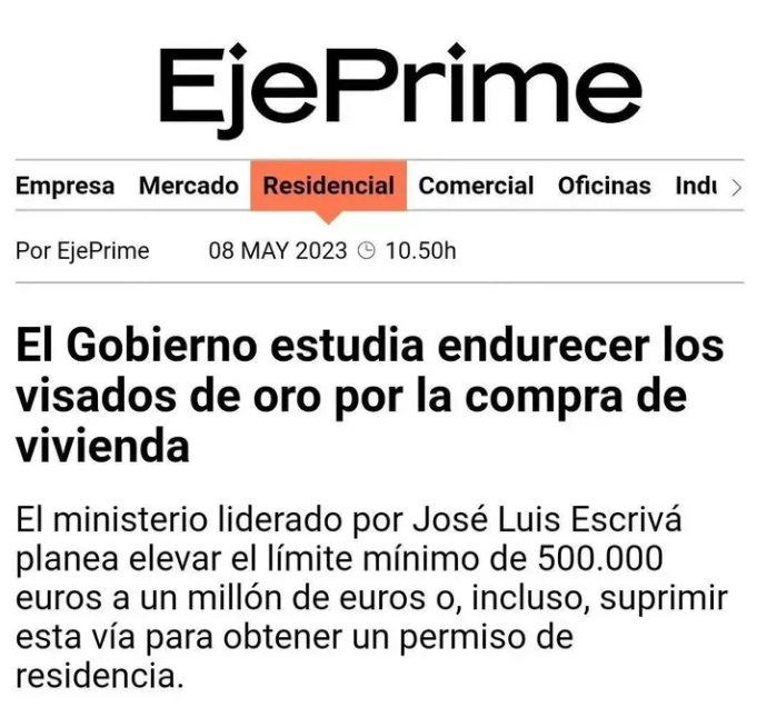 5月8日,西班牙《国家报》报道称,西班牙政府正在计划收紧该国购房黄金居留的申请制度。