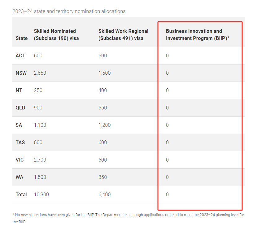 此前,澳洲官方公布了2023~2024财年移民配额,19.5万,对比前一财年的16万,总配额上限提高,但各州商业类移民配额为0,可见澳洲官方对投资移民的态度。