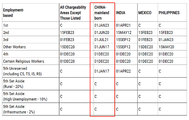 EB-5(基建项目):无排期;