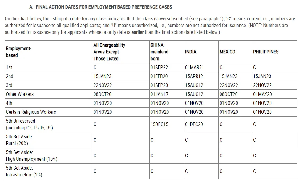 5月美国职业移民排期(表A)