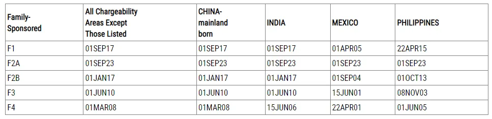 F1(公民的21岁以上未婚成年子女):2015年7月8日,前进150天;