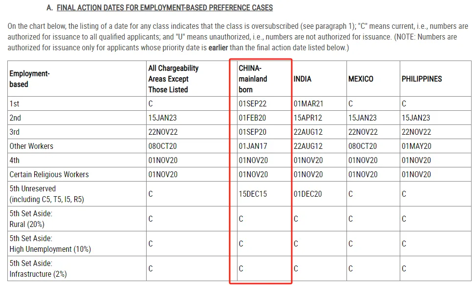EB-5(区域/非区域):2015年12月15日,无变化;