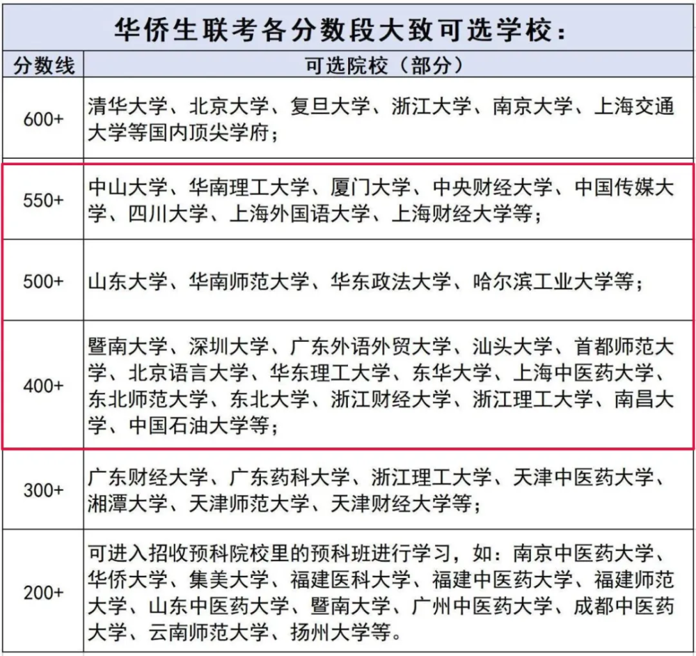 目前全国接收华侨生报考的高等院校达到了336所之多,共1000多个专业,预科招生院校也有16所,囊括了所有大家耳熟能详的985/211高校。
