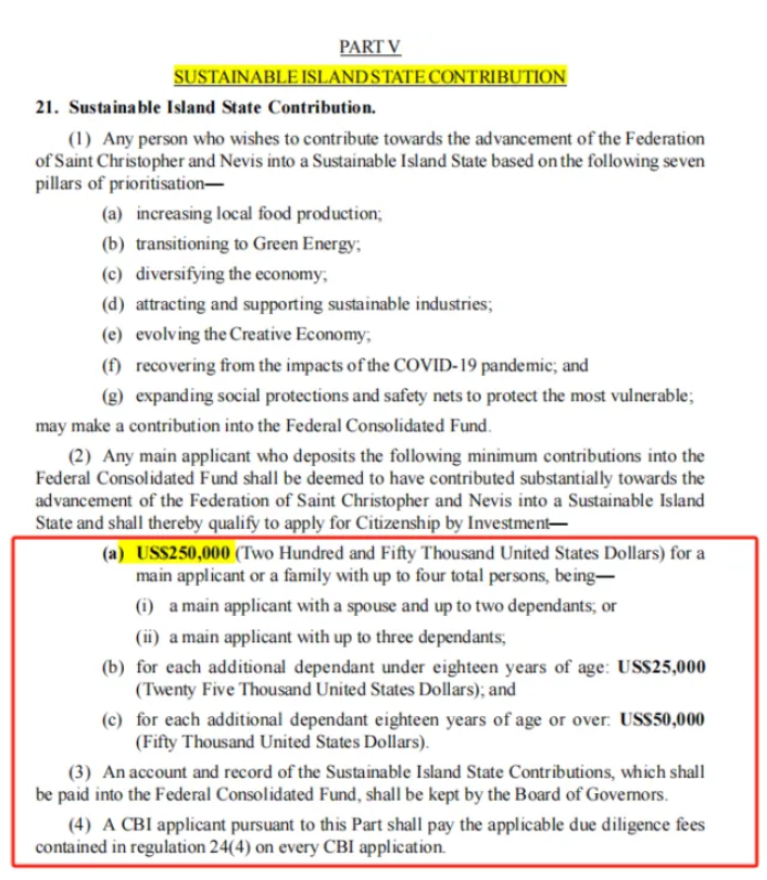 7月8日,圣基茨移民局颁布新法案,降低了对可持续岛屿国家贡献选项SISC的(捐款)投资门槛要求,法规即日生效!
