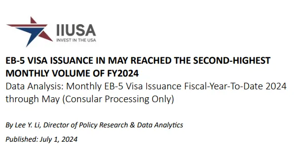 美国移民局在6月底公布了2024财年第二季度(2024年1~3月)EB5的发放数据统计。IIUSA最近根据移民局的数据出了一份报告: