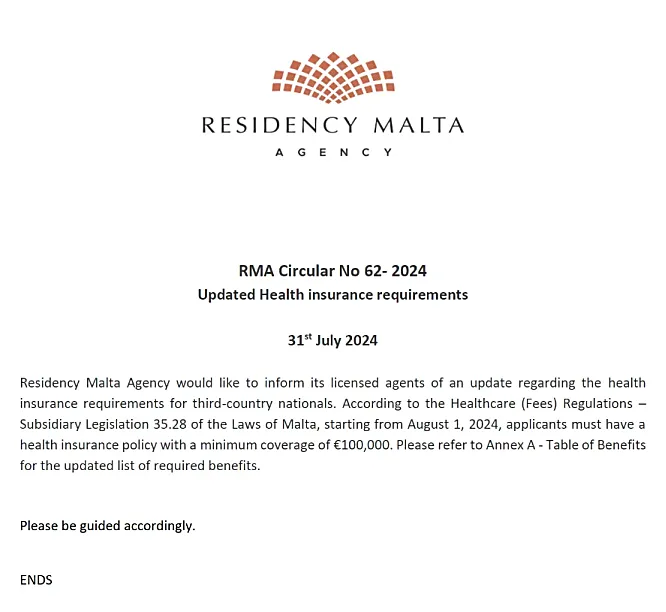 - 保险保额要求:根据马耳他法律附属立法35.28《医疗保健(费用)条例》,申请人必须持有最低保额为100,000欧元的健康保险单。这一变化旨在进一步保障申请人在马耳他的医疗安全与福祉。