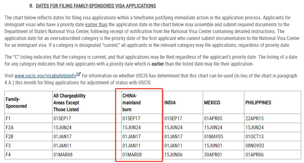 美国国务院更新了2024年9月的职业和亲属移民排期,这是2024财年最后一个月。对于中国大陆申请人来说,各移民类别没有前进,也没有后退。