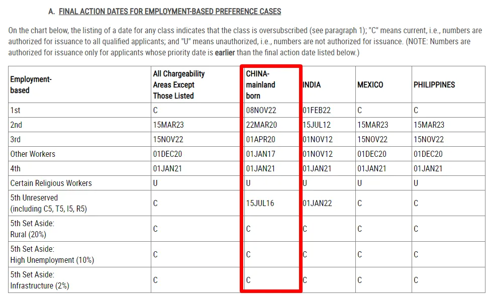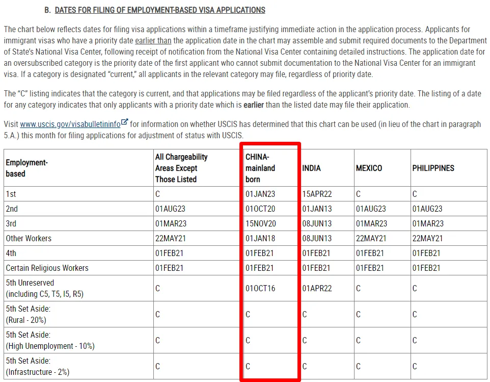 二、10月美国职业移民排期(表B)