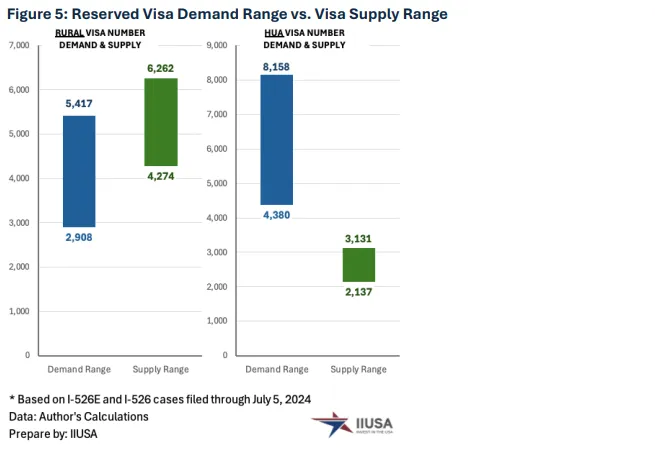 从整体来看,美国移民局USCIS 处理的大多数 I-526E 申请与乡村项目有关。已裁决了总共 754 份 I-526E 案件中 65% 为乡村项目的申请,尽管 60%的总申请是针对高失业项目的。这与RIA 法案中明确表示优先处理乡村项目条款一致。