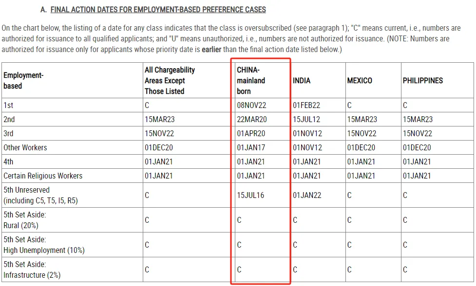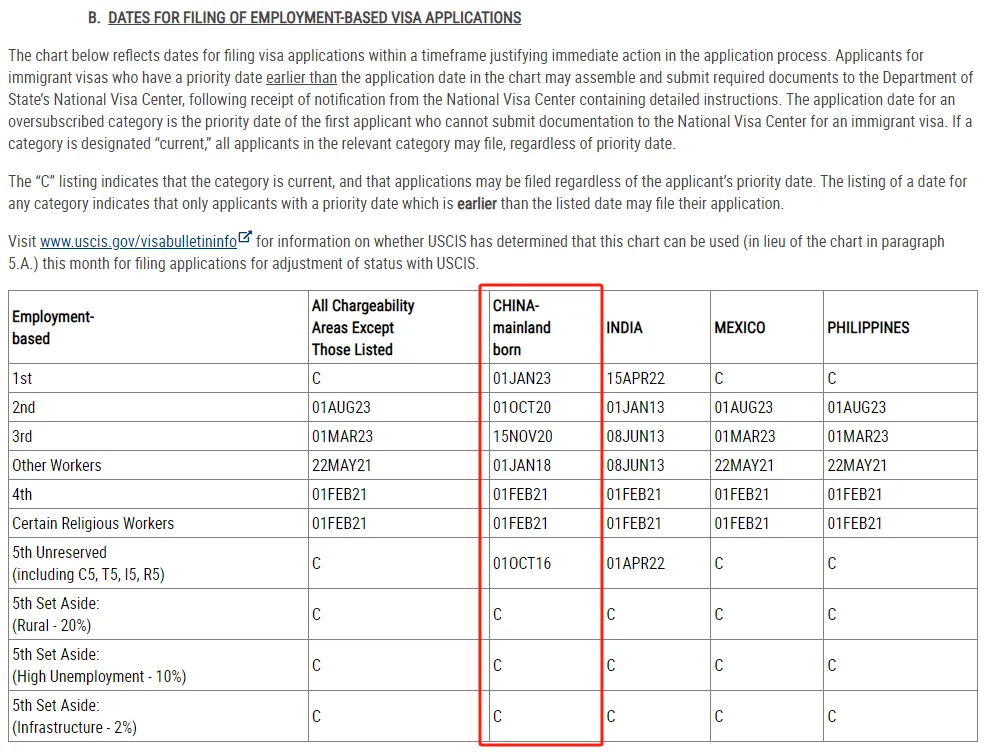 二、11月美国职业移民排期(表B)