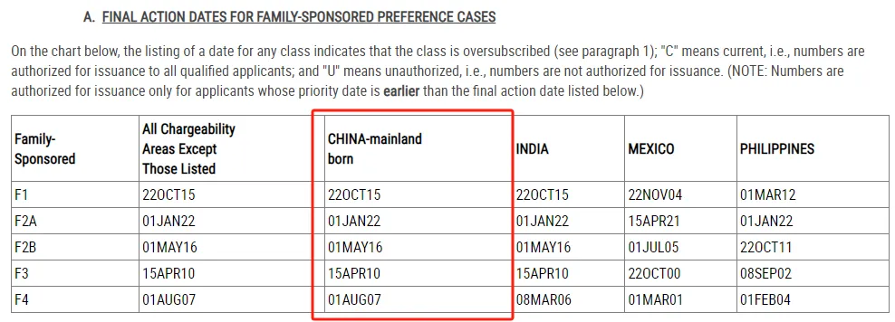 · 亲属移民F2A的表A小幅前进,F3大幅前进