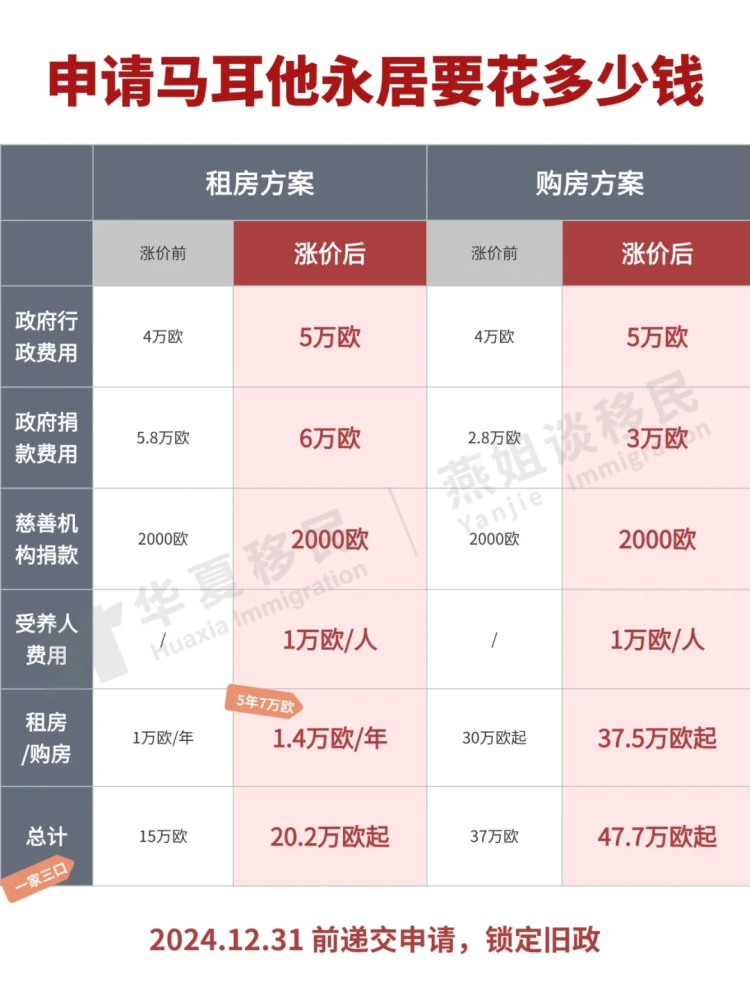 按照涨价后的价格,明年申请马耳他移民至少需要多花费40万RMB。