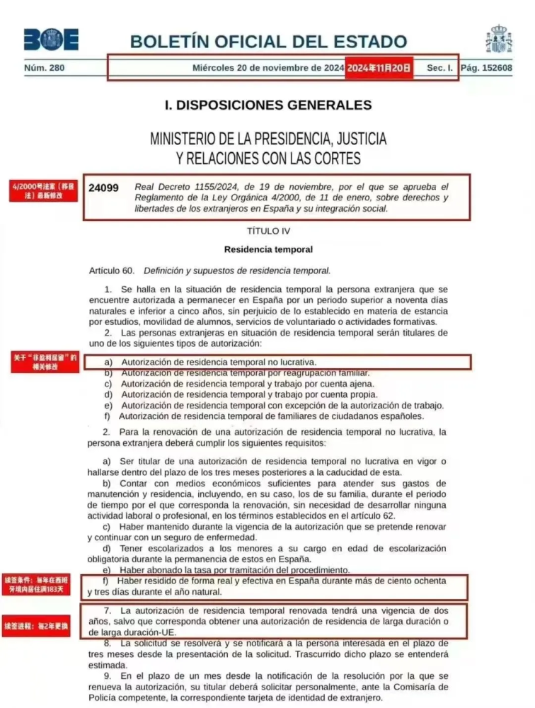 即西班牙通过法案关停黄金签证后,另一个大火的非盈利项目也迎来了调整。11月20日西班牙部长会议批准了新《外国人条例》,对非盈利签证的续签进行了调整