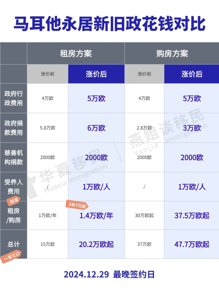 马耳他官方在近日突然宣布,2025年1月1日起实行新政,费用上涨。