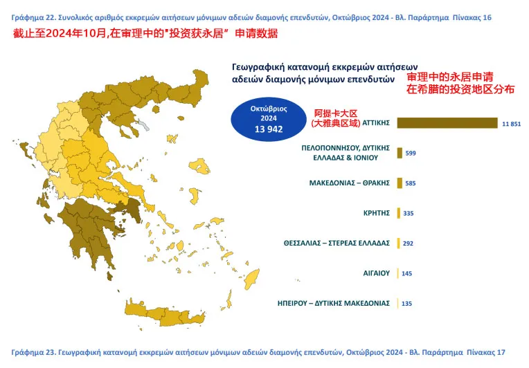 希腊官方公布了截至2024年10月,黄金签证的相关数据情况。2024 年申请人数再创新高,已超过 2023 年全年申请人数。