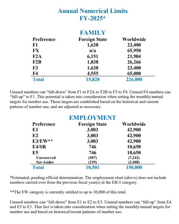 ✅国别配额:EB-1、EB-2和EB-3仅为3003,EB-4和EB-5分别分到746。