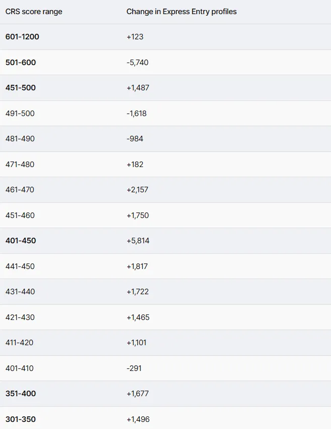 然而,新规一出,这部分加分被全面取消。结果,不少原本在500分以上的候选人CRS分数骤降,跌入低分区段,直接错失邀请机会。