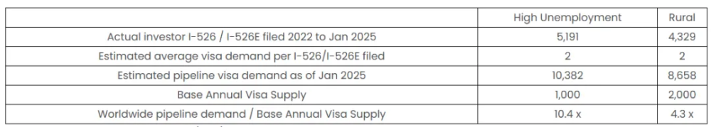 然而,根据《EB-5改革与诚信法案》的规定,每财年仅配备约1,000个高失业地区签证和2,000个乡村地区签证。