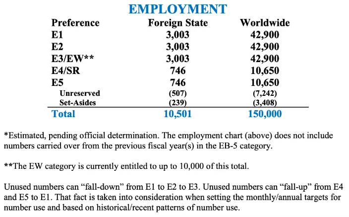 2025财年,美国职业移民的总体配额为15万张: