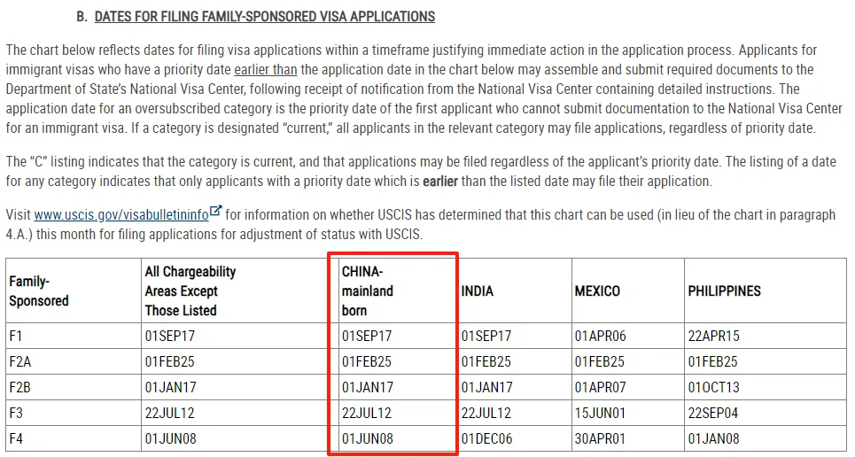 四、6月美国亲属移民排期(表B)