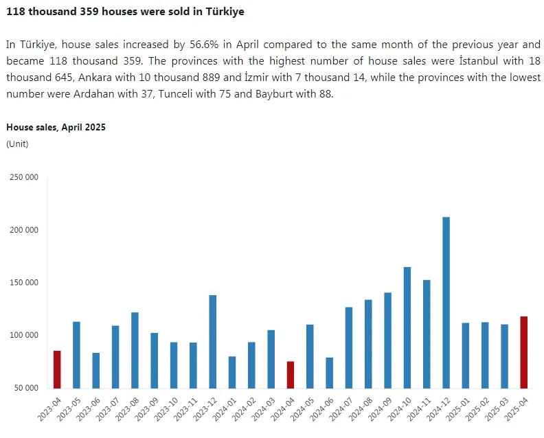 土耳其房地产市场近年来一直非常火爆,根据土耳其2025年4月房产交易数据显示,2025年4月土耳其全国房产成交量达11.8万套,同比激增56.6%。