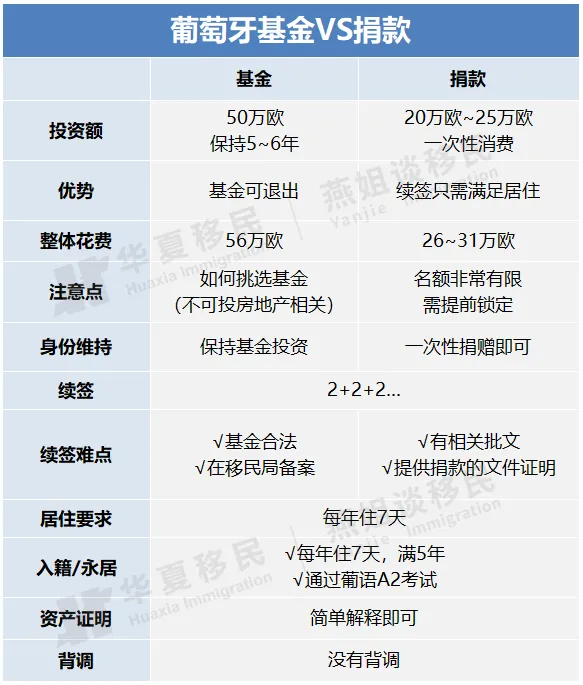 很多朋友都有疑问:同样都是拿葡萄牙黄金签证,是选基金更省心还是捐款更省钱?两个项目该怎么选?