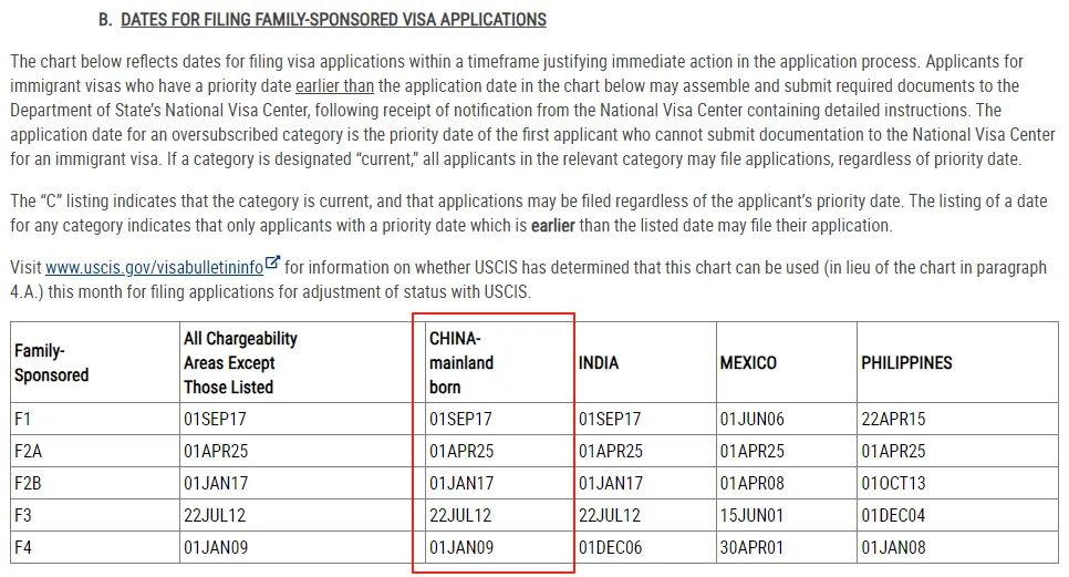 四、8月美国亲属移民排期(表B)