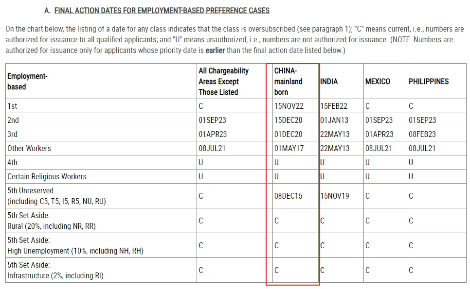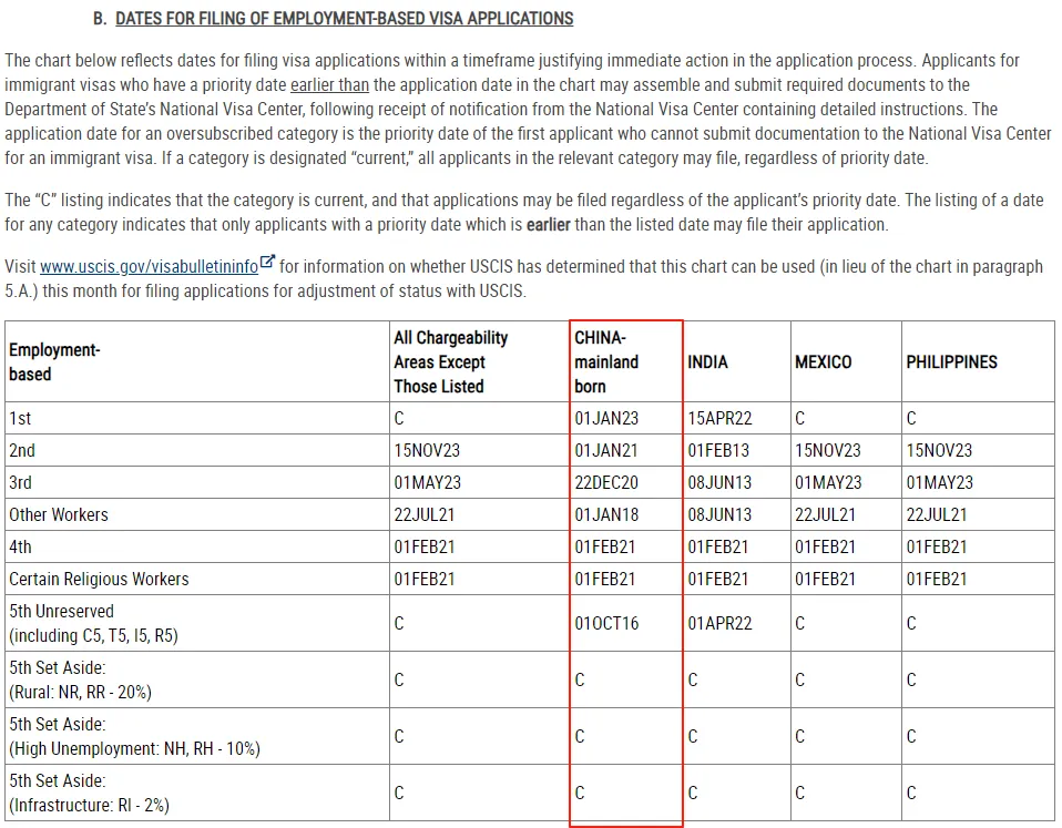 本次排期表中,官方发布了一条基于就业签证可用性: