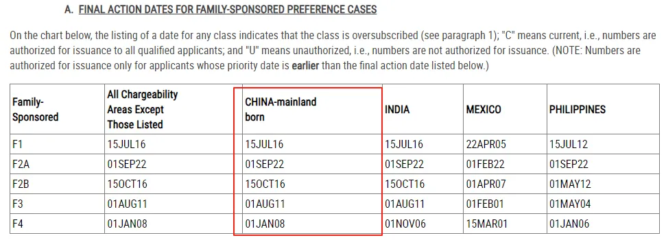三、9月美国亲属移民排期(表A)