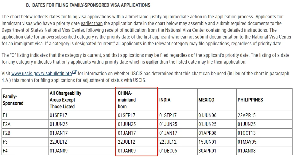四、9月美国亲属移民排期(表B)
