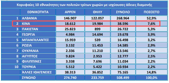 目前,持有希腊有效居留许可的中国籍公民共有38,596,其中通过黄金签证获得的占最大比例,共有24,301名。