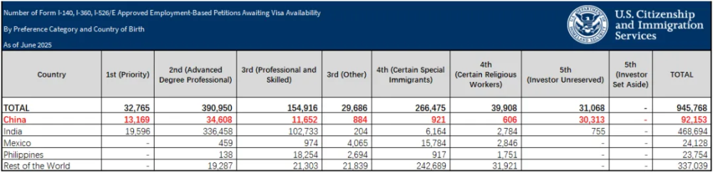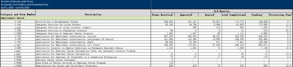 10月8日,美国移民局更新了2025财年第三季度(2025年4月~6月),各移民类别的相关统计数据。