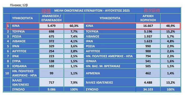 希腊移民局公布了2025年8月的移民数据情况,共有23,882人通过黄金签证拿到了希腊永久居留身份,其中 74% 是初次申请,26% 是续签。中国申请人持续保持领先。