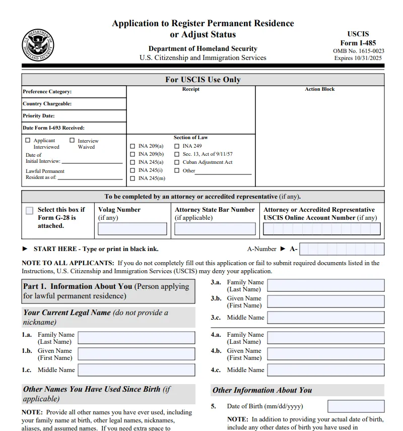 根据《移民与国籍法》(INA),只有特定的移民有资格改变他们的非移民身份,并通过表格I-485登记永久居住。要申请绿卡,你必须符合条件。USCIS的绿卡资格类别可以是基于家庭、人道主义或就业的。
