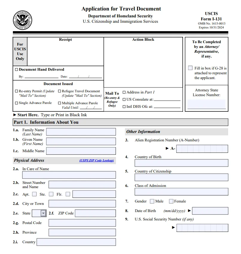 I-131表是指大多数外国人(非美国公民)必须在出国旅行前向美国移民局USCIS提交的I-131旅行证件申请表(application travel document)。此旅行证件通常由绿卡持有人使用。可以通过I-131表格申请的旅行证有三种:再入境许可证(英文:Reentry permit,回美证),难民旅行证件(Refugee Travel Document)或提前离境许可证(Advance Parole Travel Document,回美纸)。