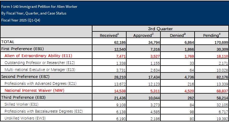日前,美国移民局更新了2025财年第三季度(2025年4月~6月),各移民类别的相关统计数据。