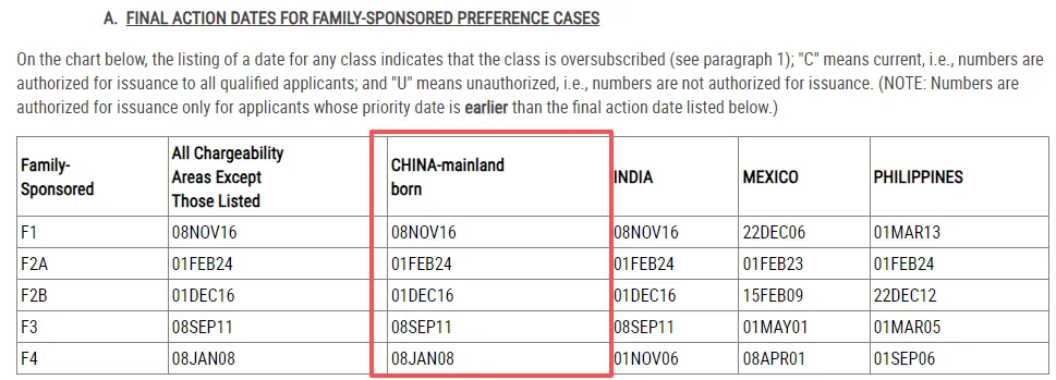 三、3月美国亲属移民排期(表A)