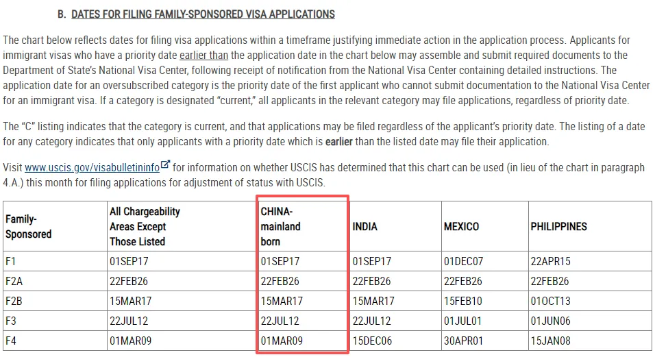 四、3月美国亲属移民排期(表B)
