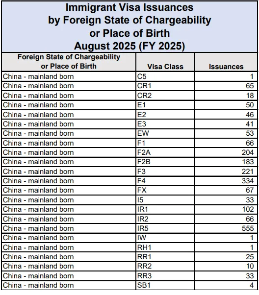 美国国务院终于更新了2025年6~8月的签证发放数据,这是自从去年5月以后的首次更新。