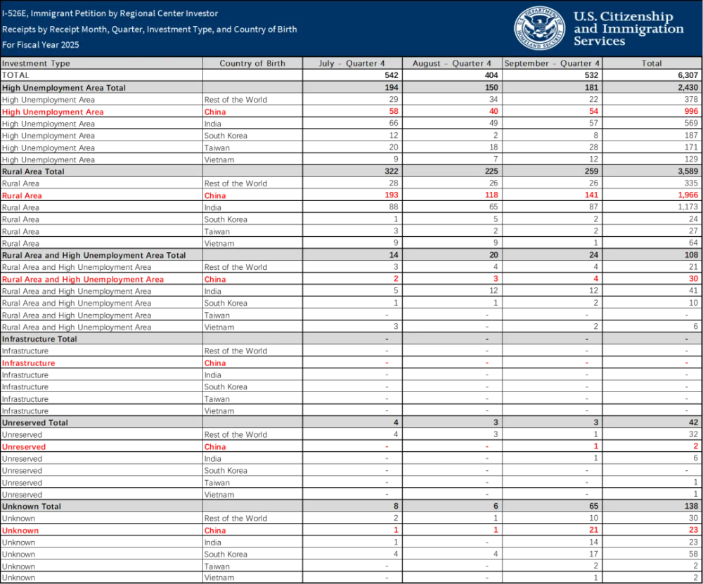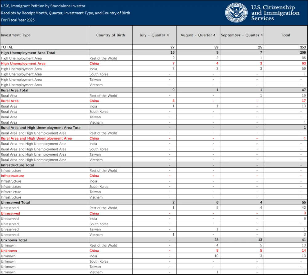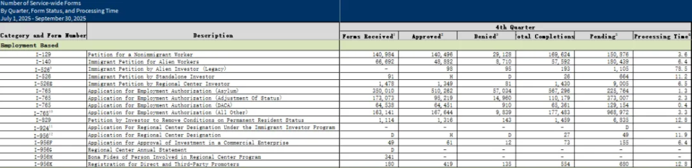 3月20日,美国移民局终于更新了2025财年第四季度(2025年7月~9月),各移民类别的相关统计数据。职业移民