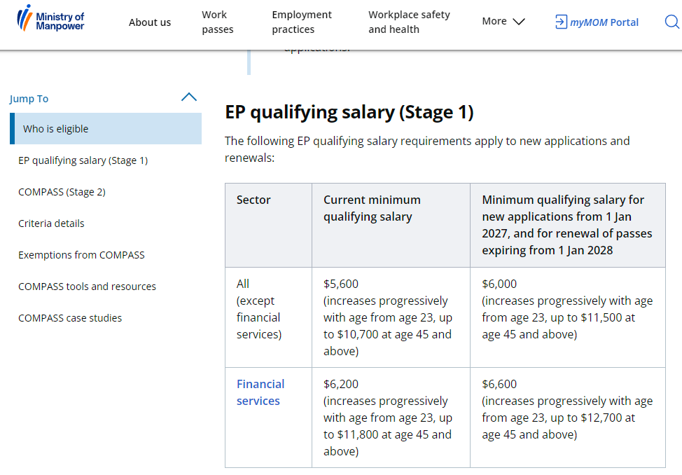 自2025年1月1日起,EP最低月薪要求已从5,000新元逐步提升,现为6,000新元。